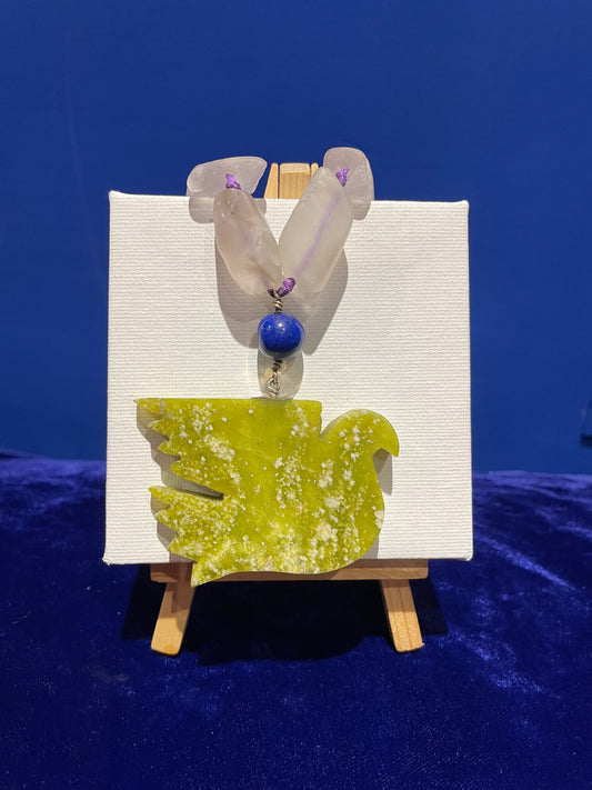 Serpentine Dove with Fluoride Stones Necklace