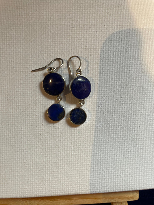 Two Tiered Lapis Earrings Set in Silver Sterling